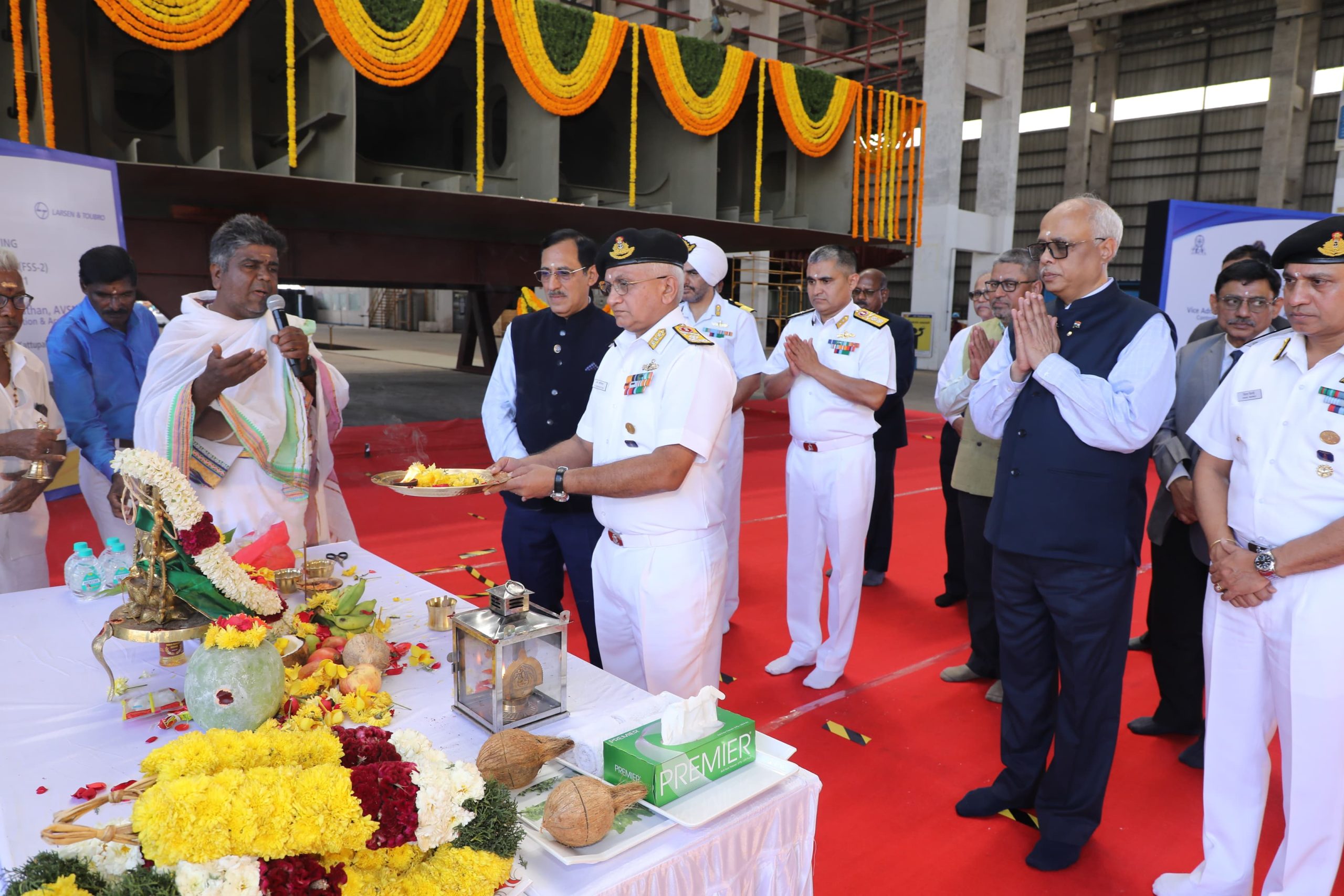 પાંચ ફ્લીટ સપોર્ટ જહાજો (FSS)માંથી બીજાનો નિર્માણ સમારોહ મેસર્સ L&T શિપયાર્ડ, કટ્ટુપલ્લી ખાતે યુદ્ધ જહાજ ઉત્પાદન અને સંપાદનના નિયંત્રક વાઇસ એડમિરલ રાજારામ સ્વામીનાથન અને ભારતીય નૌકાદળ, હિન્દુસ્તાન શિપયાર્ડ લિમિટેડ અને મેસર્સ L&T ના વરિષ્ઠ અધિકારીઓની હાજરીમાં યોજાયો હતો. ભારતીય નૌકાદળે ઓગસ્ટ 2023માં HSL સાથે પાંચ ફ્લીટ સપોર્ટ જહાજો (FSS)ના સંપાદન માટે કરાર પર હસ્તાક્ષર કર્યા હતા. જેની ડિલિવરી 2027ના મધ્યમાં શરૂ થવાની હતી. જાહેર-ખાનગી ભાગીદારીની મજબૂતાઈ દર્શાવતા, HSL એ દેશની જહાજ નિર્માણ ક્ષમતાનો અસરકારક રીતે ઉપયોગ કરવા અને ડિલિવરી માટે કડક સમયમર્યાદા પૂરી કરવા માટે મેસર્સ L&T શિપયાર્ડ, કટ્ટુપલ્લીને બે FSSના બાંધકામ માટે કોન્ટ્રાક્ટ આપ્યો છે.