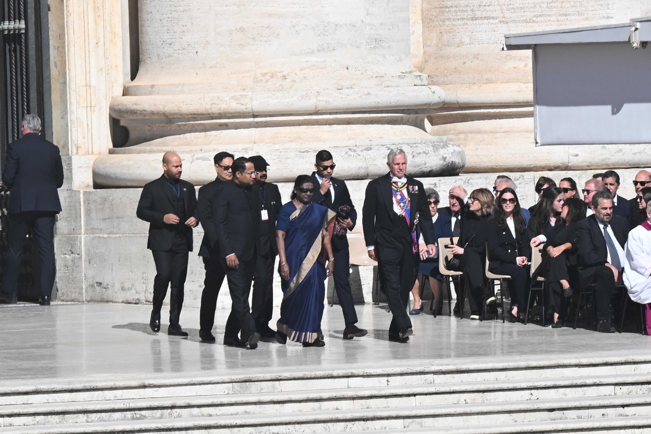 ભારતના રાષ્ટ્રપતિ શ્રીમતી. દ્રૌપદી મુર્મુએ શનિવારે (26 એપ્રિલ, 2025) વેટિકન સિટીના સેન્ટ પીટર્સ સ્ક્વેર ખાતે પવિત્ર પોપ ફ્રાન્સિસના અંતિમ સંસ્કારમાં હાજરી આપી હતી. આ સમારોહમાં કેન્દ્રીય સંસદીય બાબતો અને લઘુમતી બાબતોના મંત્રી શ્રી કિરેન રિજિજુ, લઘુમતી બાબતોના રાજ્યમંત્રી શ્રી જ્યોર્જ કુરિયન અને ગોવા વિધાનસભાના ડેપ્યુટી સ્પીકર શ્રી જોશુઆ ડી સોઝા ઉપસ્થિત રહ્યા હતા. જેઓ સત્તાવાર ભારતીય પ્રતિનિધીમંડળમાં સામેલ હતા.