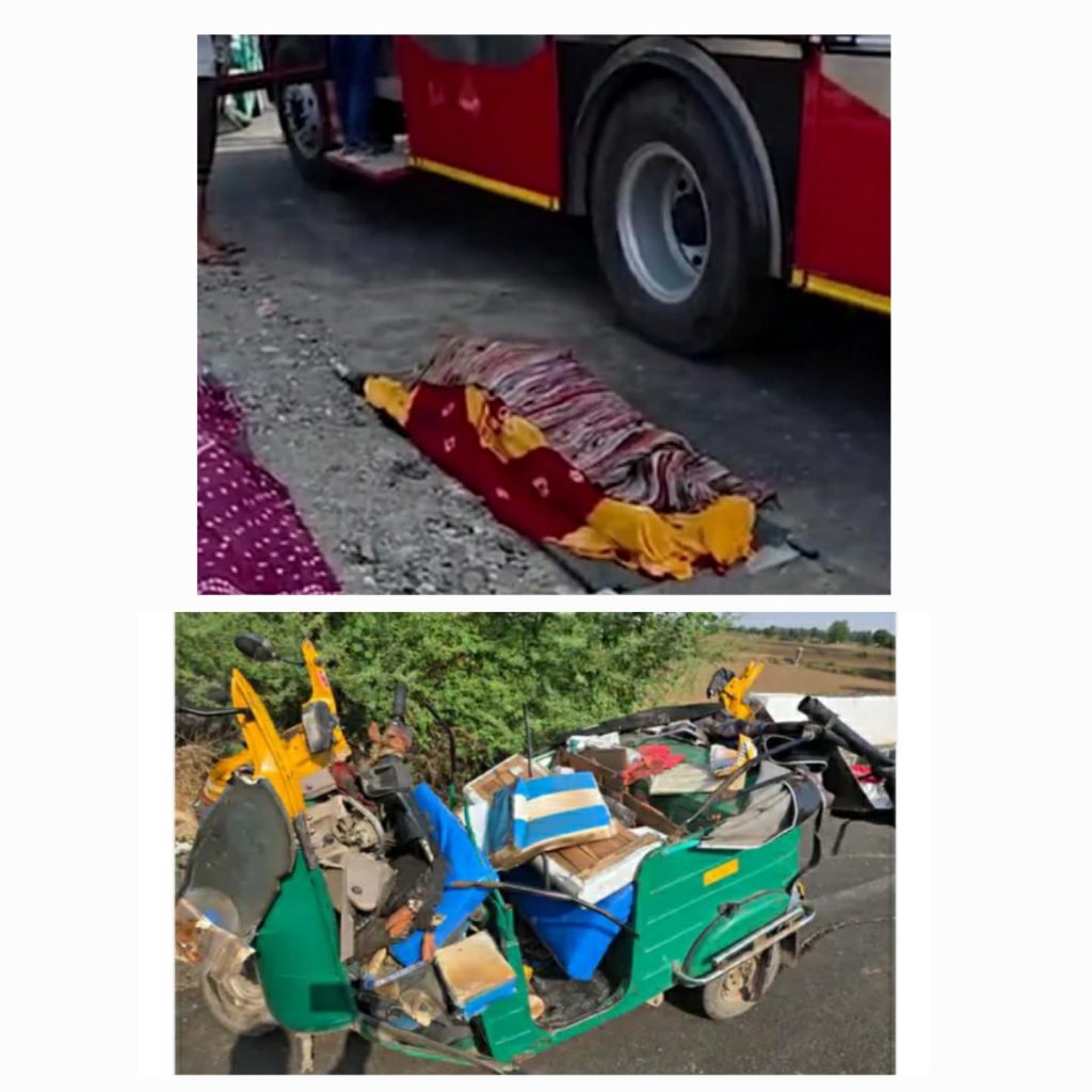 આ અકસ્માત અંગે મળતી માહિતી મુજબ પૂરપાટ ઝડપે આવી રહેલી એસટી બસે રિક્ષાને ટક્કર મારતાં રિક્ષામાં સવાર મહિલા અને રિક્ષા ડ્રાઇવરનું ઘટનાસ્થળેજ કરૂણ મોત નીપજ્યું હતું. જ્યારે અન્ય બે લોકોને ઘાયલ થયા છે. અકસ્માતના બનાવની જાણ થતાં પોલીસ અને ફાયર વિભાગની ટીમ ઘટનાસ્થળે દોડી આવી હતી અને બચાવની કામગીરી કરી હતી.