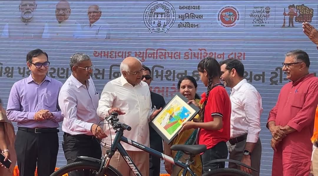 એર ક્વોલિટી મેનેજમેન્ટ સેલ દ્વારા યોજાયેલ પર્યાવરણલક્ષી ચિત્ર સ્પર્ધાના પાંચ વિજેતાઓને મુખ્યમંત્રીશ્રીએ પુરસ્કાર સ્વરૂપે સાઇકલ એનાયત કરી હતી.