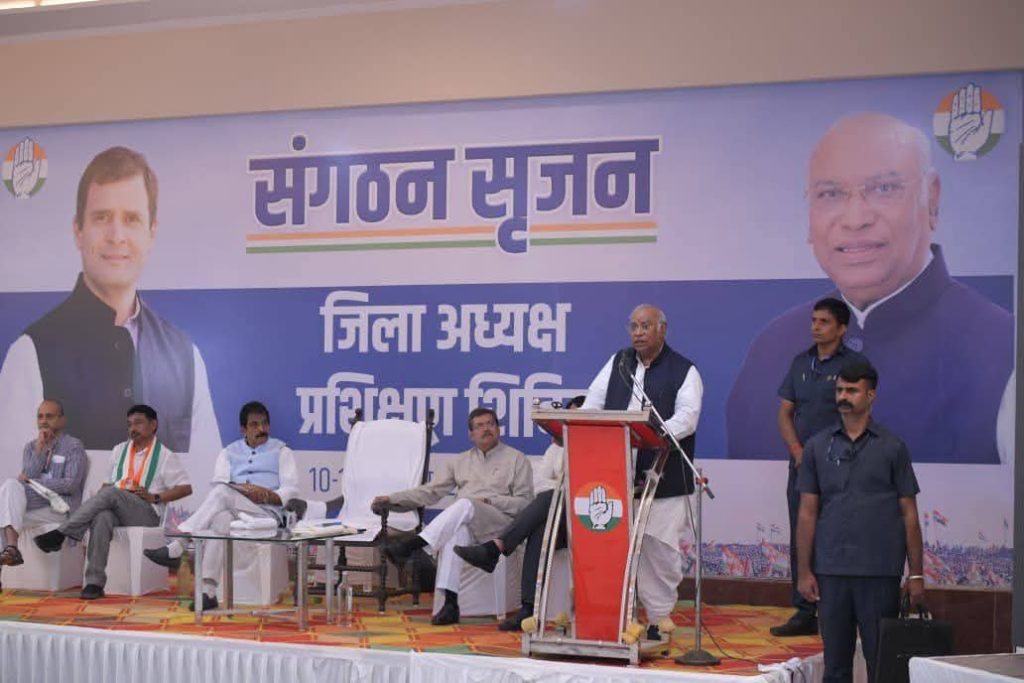 કોંગ્રેસ પાર્ટીના જિલ્લા અને નવગર અધ્યક્ષોને લઈને જૂનાગઢમાં 10 દિવસીય પ્રશિક્ષણ શિબિરનું આયોજન કરવામાં આવ્યું છે, ત્યારે શિબિરના ઉદ્ધાટન પહેલા ખડગે સોશિયલ મીડિયામાં કહ્યું હતું કે, ‘લોકતંત્રમાં ચૂંટણી લડવી સામાન્ય વાત છે.’ જ્યારે ખડગેએ તેમના સંબોધનમાં કહ્યું કે, ‘ગુજરાત એ ભૂમિ છે, જ્યાં મહાત્મા ગાંધી અને વલ્લભભાઈ પટેલ જેવા લોકોના જન્મ થયો અને દેશને આઝાદી અપાવવા માટે કામ કર્યુ. તેઓ સમ્માનને પાત્ર છે, કારણે કે તેમનાથી જ આજે દેશ સ્વતંત્ર અને એકજુથ છે.’