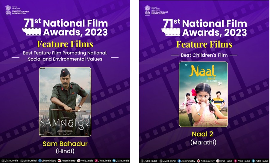 ૭૧મા રાષ્ટ્રીય ફિલ્મ પુરસ્કાર સમારોહ આજે, ૨૩ સપ્ટેમ્બરના રોજ નવી દિલ્હીના વિજ્ઞાન ભવન ખાતે સત્તાવાર રીતે શરૂ થયો છે. રાષ્ટ્રપતિ દ્રૌપદી મુર્મુ ભારતીય સિનેમાની કેટલીક શ્રેષ્ઠ પ્રતિભાઓને પ્રતિષ્ઠિત સન્માન આપી રહ્યા છે.