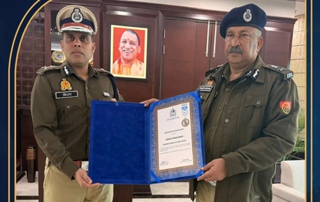 ઉત્તર પ્રદેશના પોલીસ મહાનિર્દેશક રાજીવ કૃષ્ણાએ લખનૌ રેન્જના પોલીસ મહાનિરીક્ષક કિરણ એસને ઇન્ટરપોલ મેડલ ઓફ એક્સેલન્સ પ્રમાણપત્ર અર્પણ કર્યું છે.