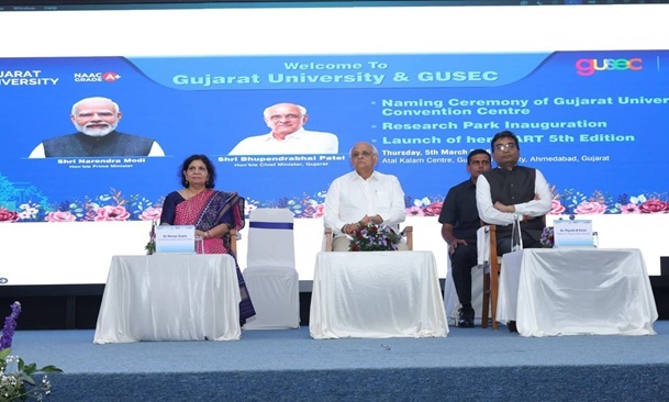 મુખ્યમંત્રીશ્રી ગુજરાત યુનિવર્સિટીના કન્વેન્શન સેન્ટરનું વિદ્યાગૌરી નિલકંઠ સભાપુરમ નામકરણ, નવનિર્મિત રિસર્ચ પાર્કનું લોકાર્પણ તથા herSTARTના પાંચમાં સંસ્કરણના શુભારંભ અવસરે સંબોધન કરી રહ્યાં હતા.