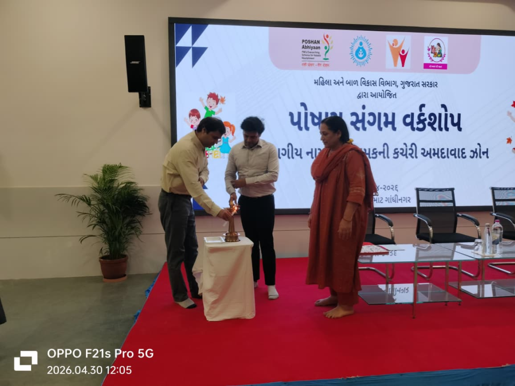 મહિલા અને બાળ વિકાસ વિભાગની વિભાગીય નાયબ નિયામકશ્રીની કચેરી, અમદાવાદ ઝોન દ્વારા આજે EDII, ભાટ ખાતે પોષણ સંગમ વર્કશોપનું સફળ આયોજન કરવામાં આવ્યું હતું. આ વર્કશોપ મહિલા અને બાળ વિકાસ વિભાગના સચિવ શ્રી રાકેશ શંકર તથા કમિશનર શ્રી આઈસીડીએસ ડૉ. રણજીત કુમારના અધ્યક્ષસ્થાને યોજાયો હતો. આ વર્કશોપ દ્વારા અમદાવાદ ઝોનમાં બાળકોના આરોગ્ય, પોષણ અને સર્વાંગી વિકાસ માટે સરકાર તથા સહયોગી સંસ્થાઓ વચ્ચે મજબૂત સમન્વય સર્જાયો હતો.